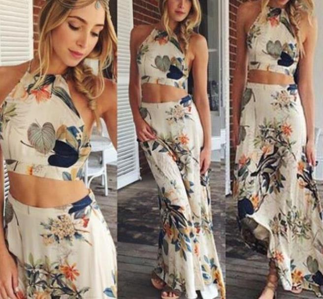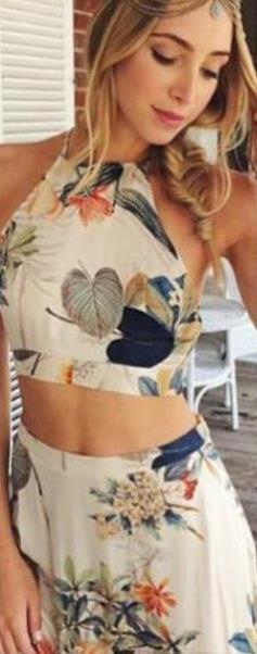Band Printed Half Body Wrapped Chest Long Skirt Set