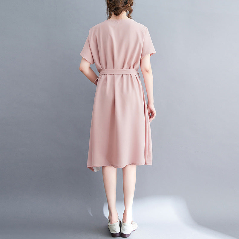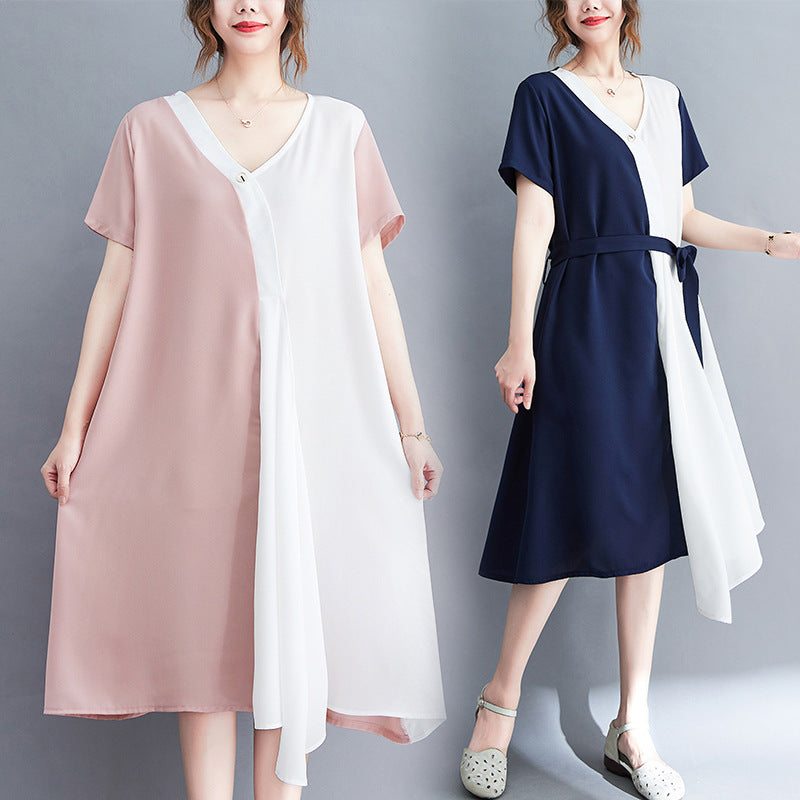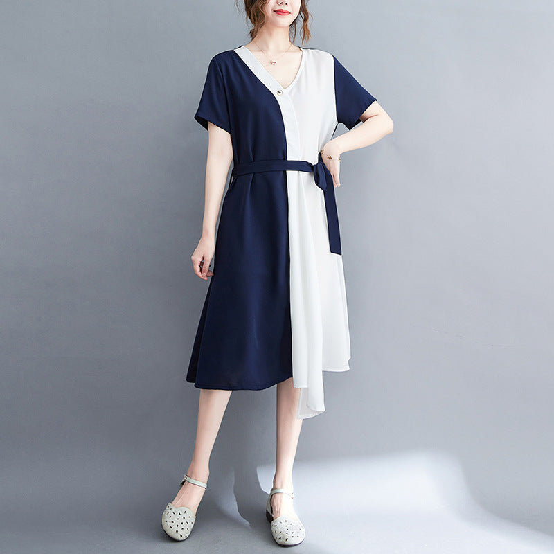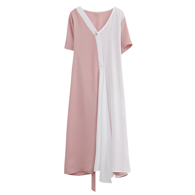 Color Matching Women's Outer Loose Slimming With Pockets V-neck Dress