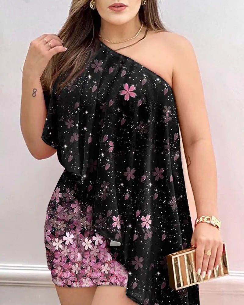 Floating Edge Diagonal Collar Sleeveless Dress