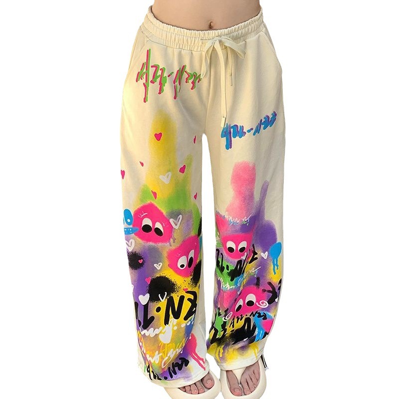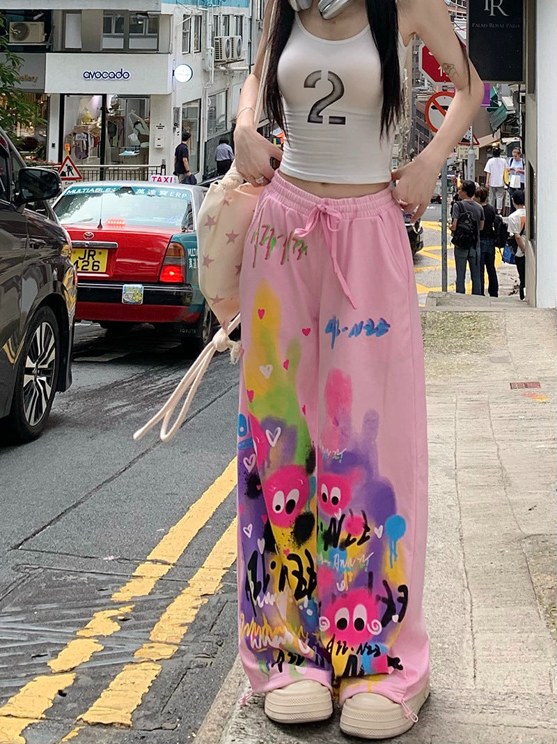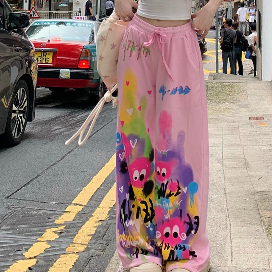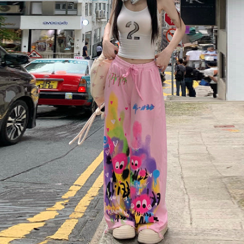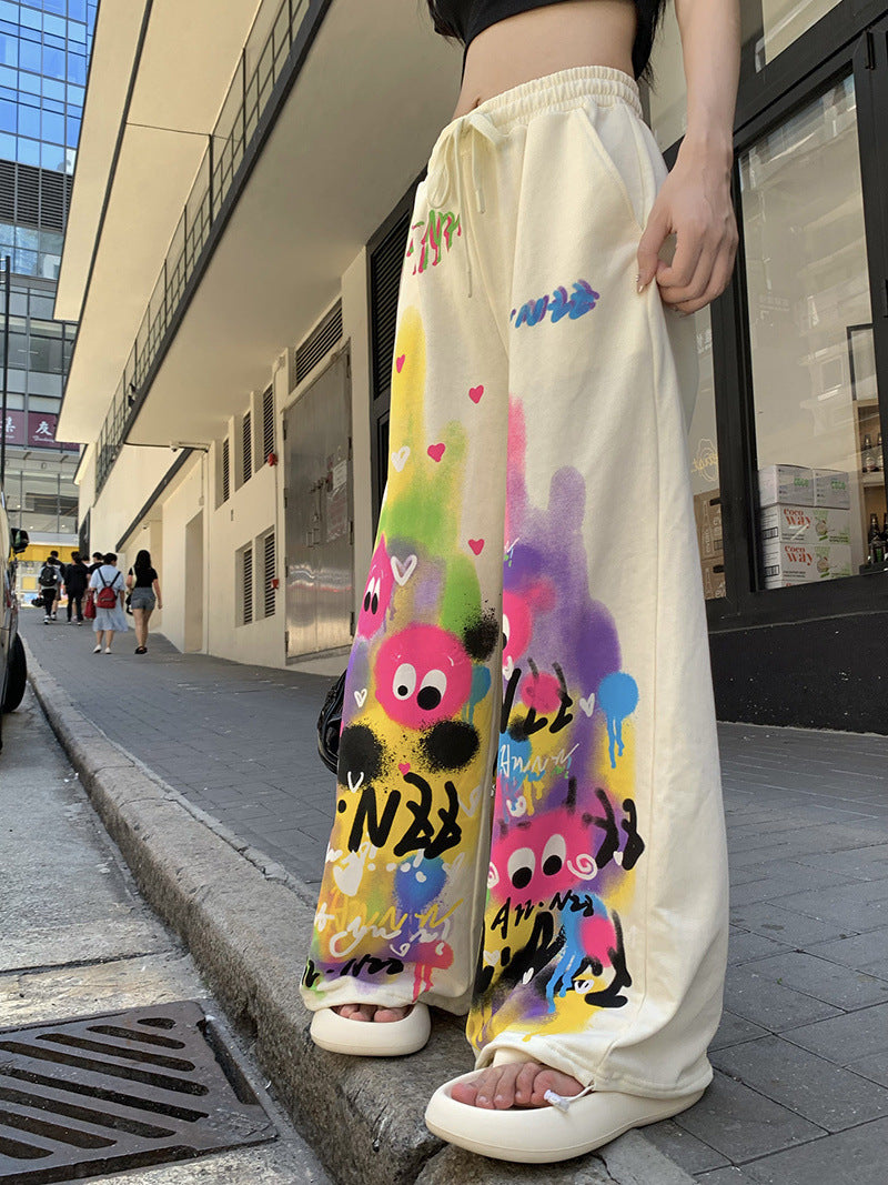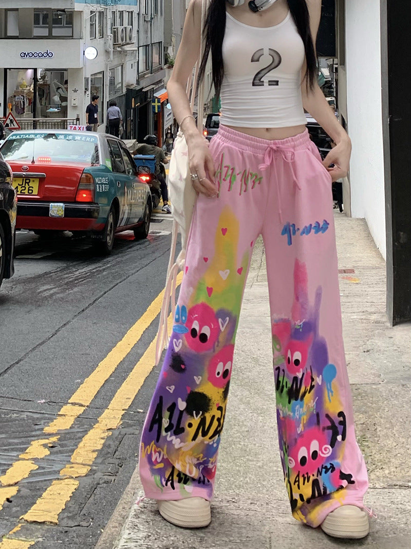 High Waist Drawstring Wide-leg Pants Summer High Waist Loose And Slimming Mop Pants Cartoon