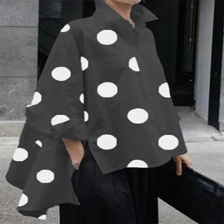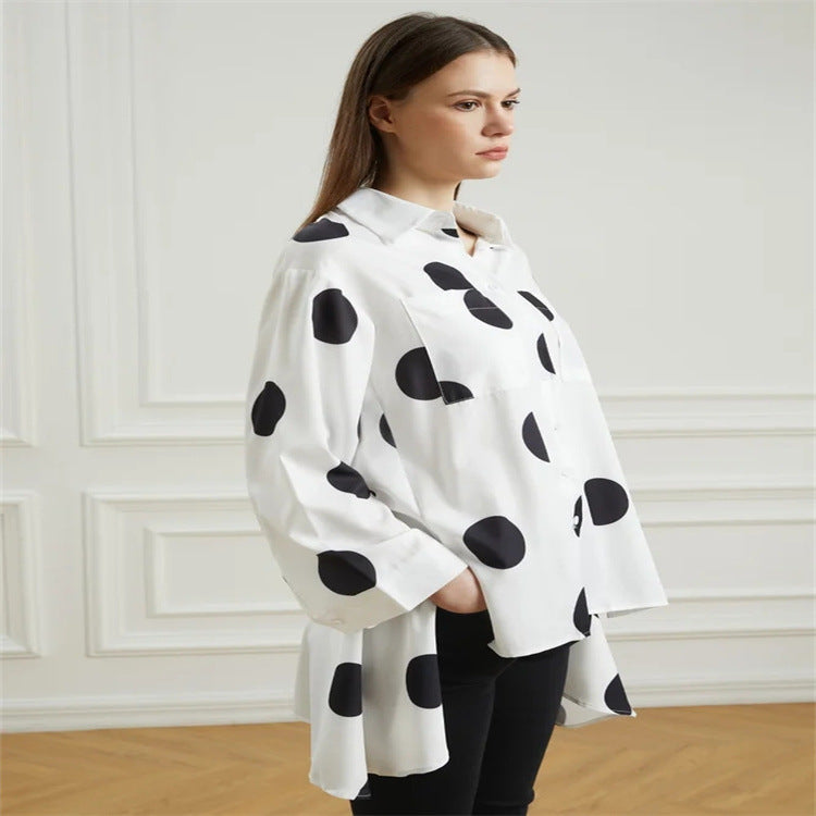 Long Sleeve Polka Dot Chiffon Temperament Commute White Lapel Shirt