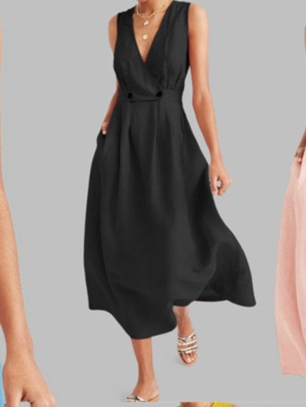 Plus Size Sleeveless Long Cotton And Linen Dress