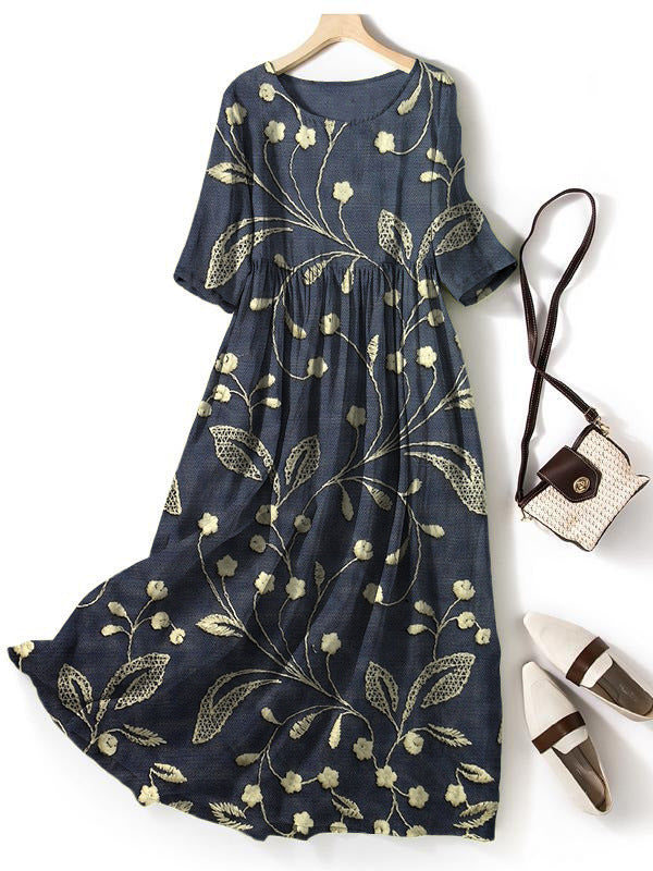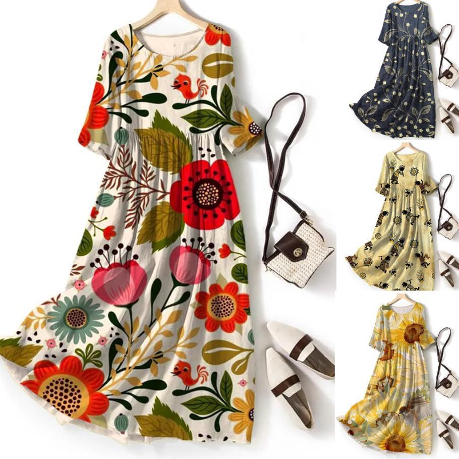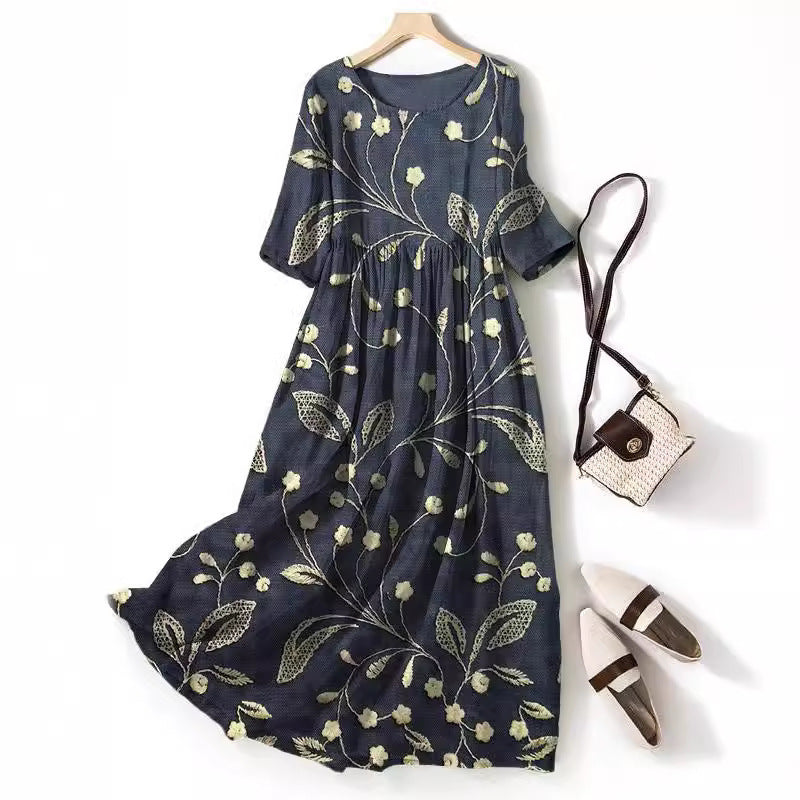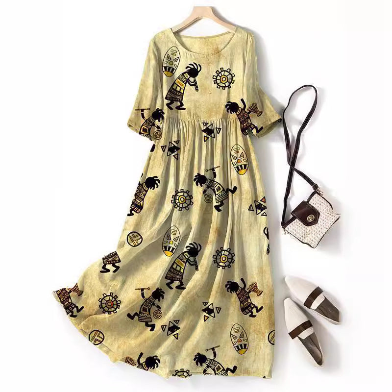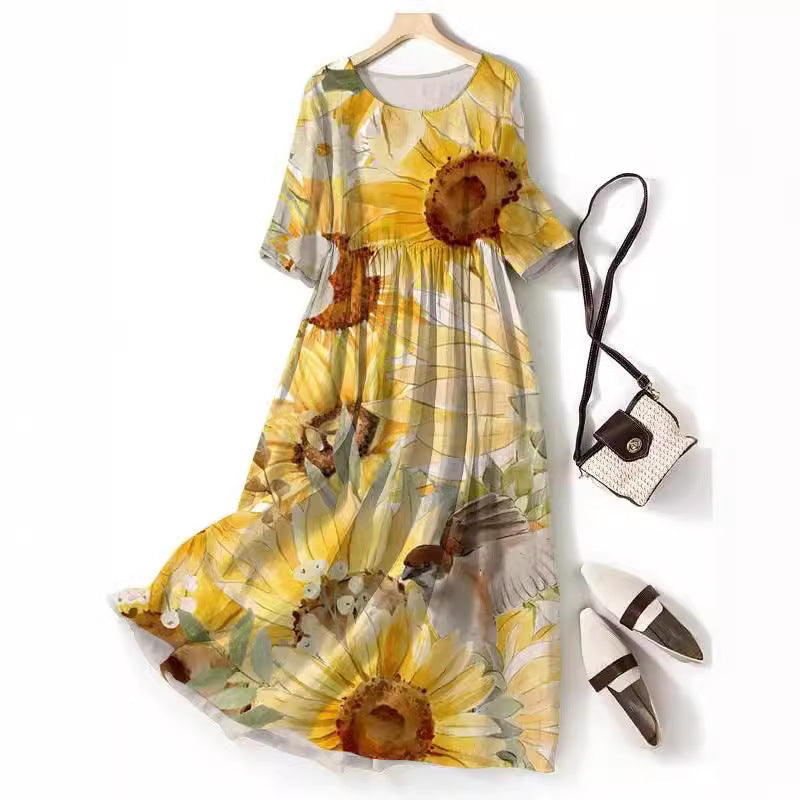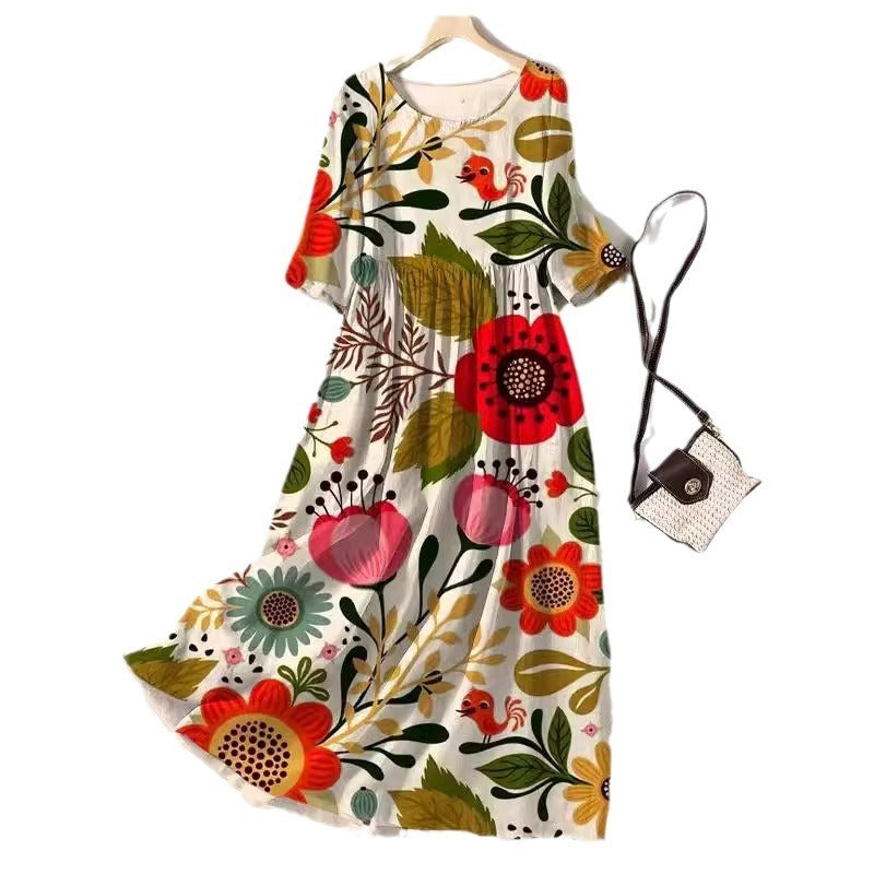 Round-neck Long Printed Casual Fashion Ladies Dress