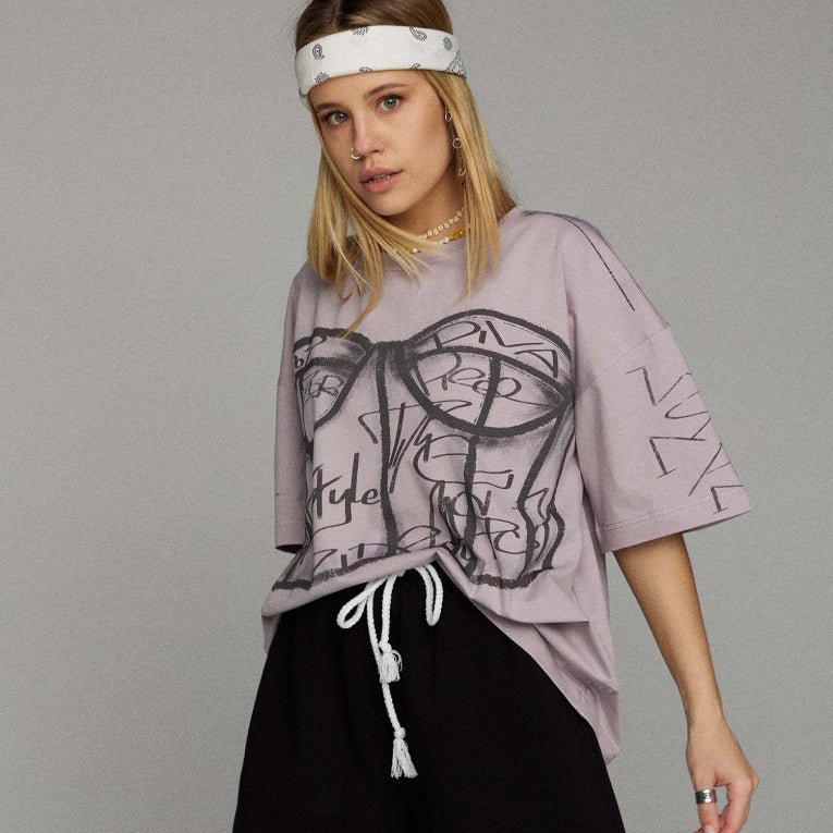 Sexy Street Style Trendy Pullover Loose Print T-shirt