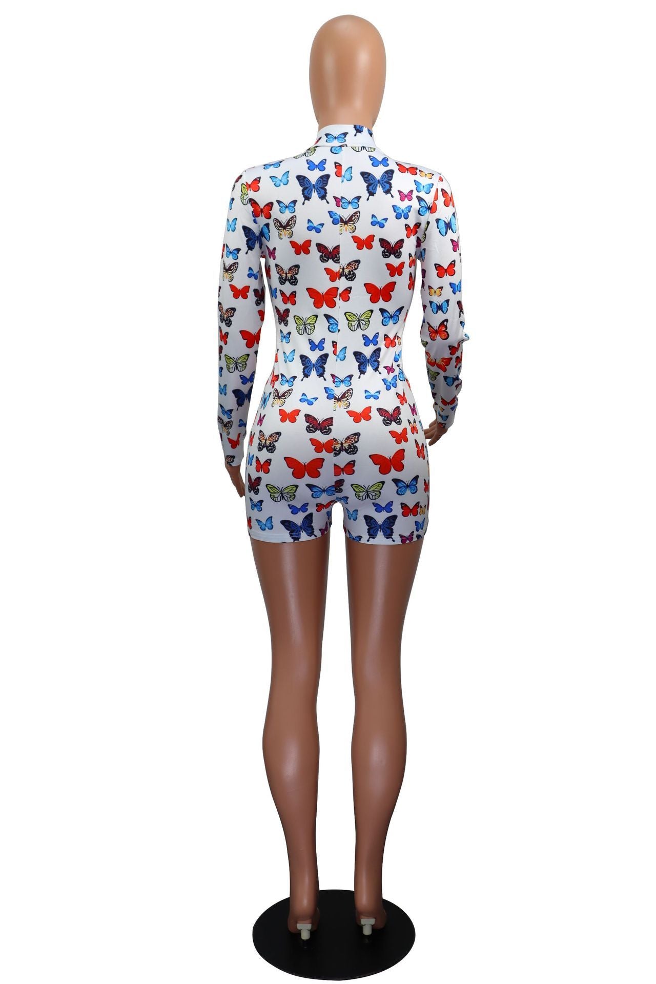 V-neck Printed Sheath Skirt Long Sleeve Jumpsuit