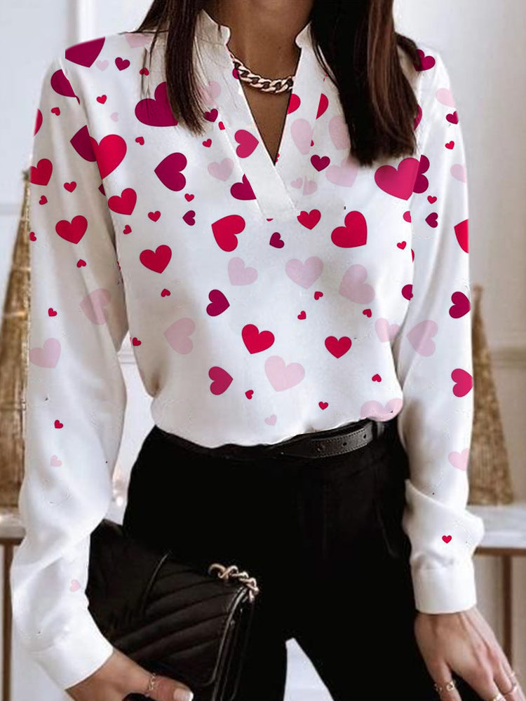 Women's Casual Long-sleeved V-neck Heart Printing Shirt