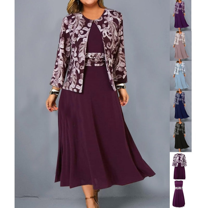 Women's Fashionable Printed Sleeveless Dress Short Coat Suit
